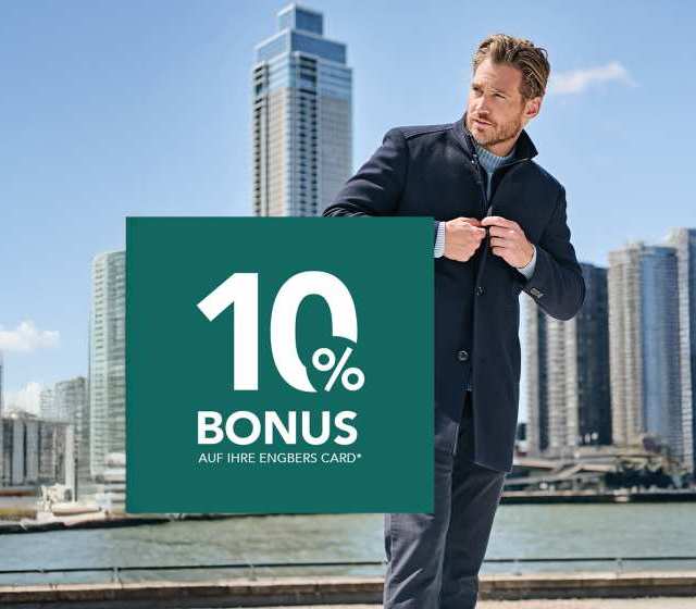 Auf der Suche nach aktuellen Fashiontrends für den Mann – für jede Gelegenheit, passend zu jedem Look und für jeden Typ – sind Sie bei unserem engbers immer an der richtigen Adresse.Alle engbersCard-Kunden können sich vom 18. bis 22. September 10 % Rabatt anstatt der üblichen 3 % Rabatt auf ihren gesamten Einkauf sichern!