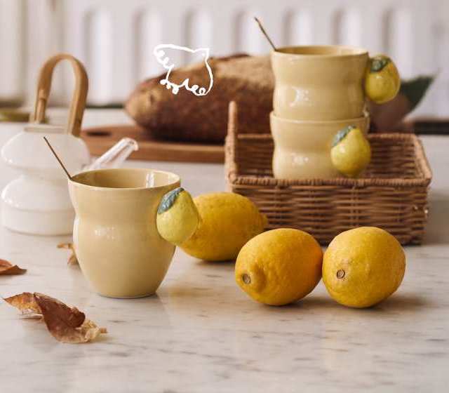 Mit ihrem liebevollen Zitronendekor sorgt die Keramiktasse von Søstrene Grene für gute Laune und gemütliche Genussmomente.